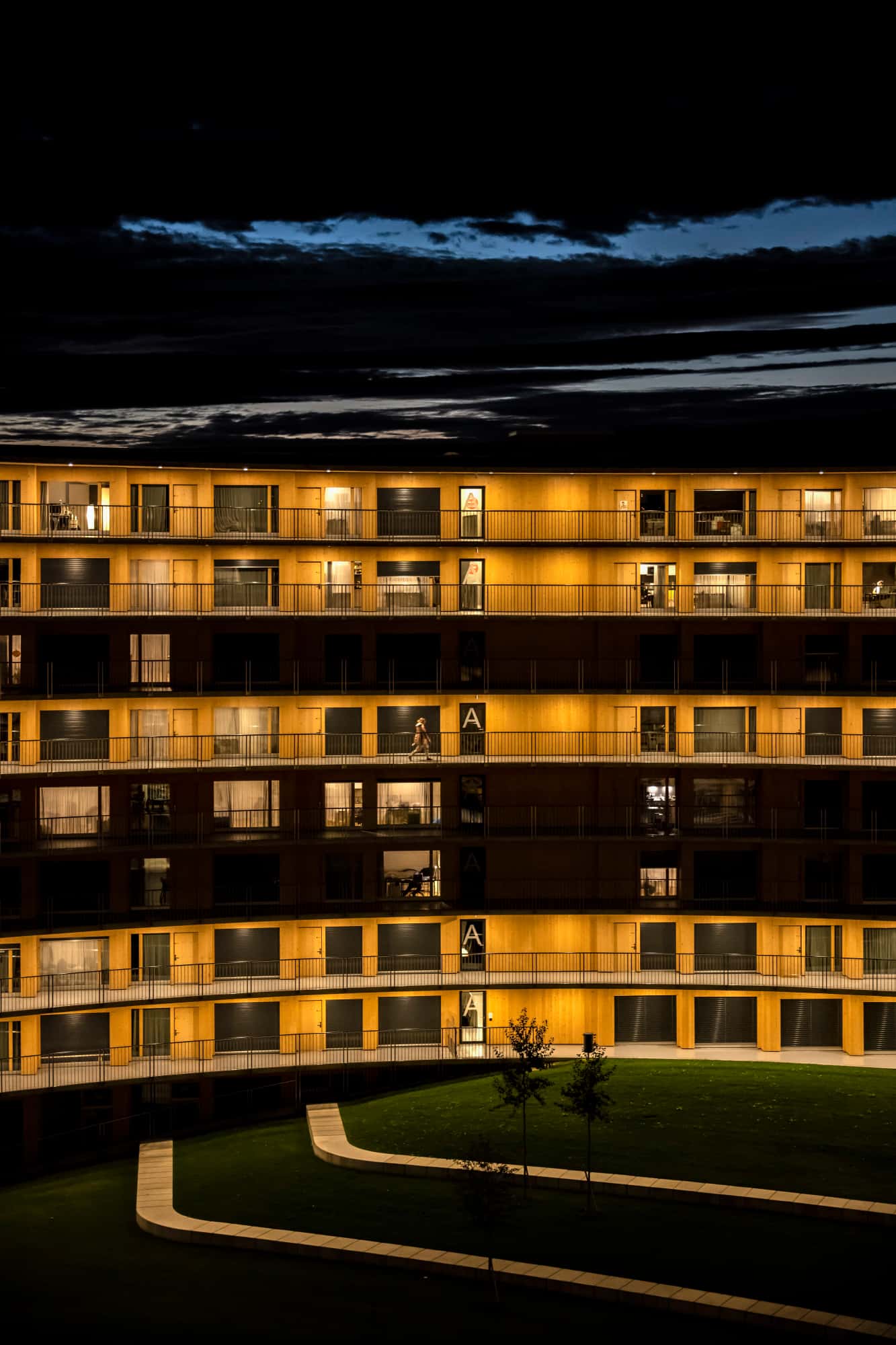 Das Gebäude ermöglicht eine neuartige Art der Kohabitation, welche sich sowohl auf der grosszügigen Rampe als auch im gemeinschaftlichen Innenhof entfaltet. Das Wohnheim dient als Olympisches Dorf für die Jugendolympiade 2020.