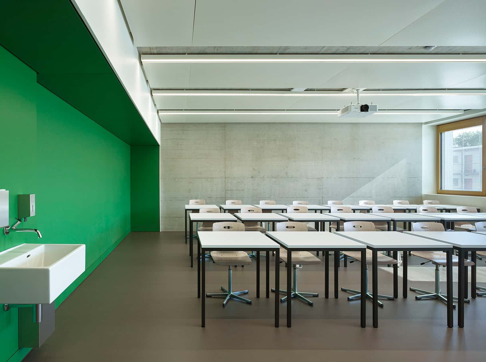 Die beiden Programme Schule und Busdepot prägen die Entwurfsentscheide, die Architektur und die Materialisierung. Nichts muss erfunden, sondern nur erkannt, aufgenommen und logisch zusammengefügt werden. Es entstehen zeitlose und dauerhafte Lösungen.