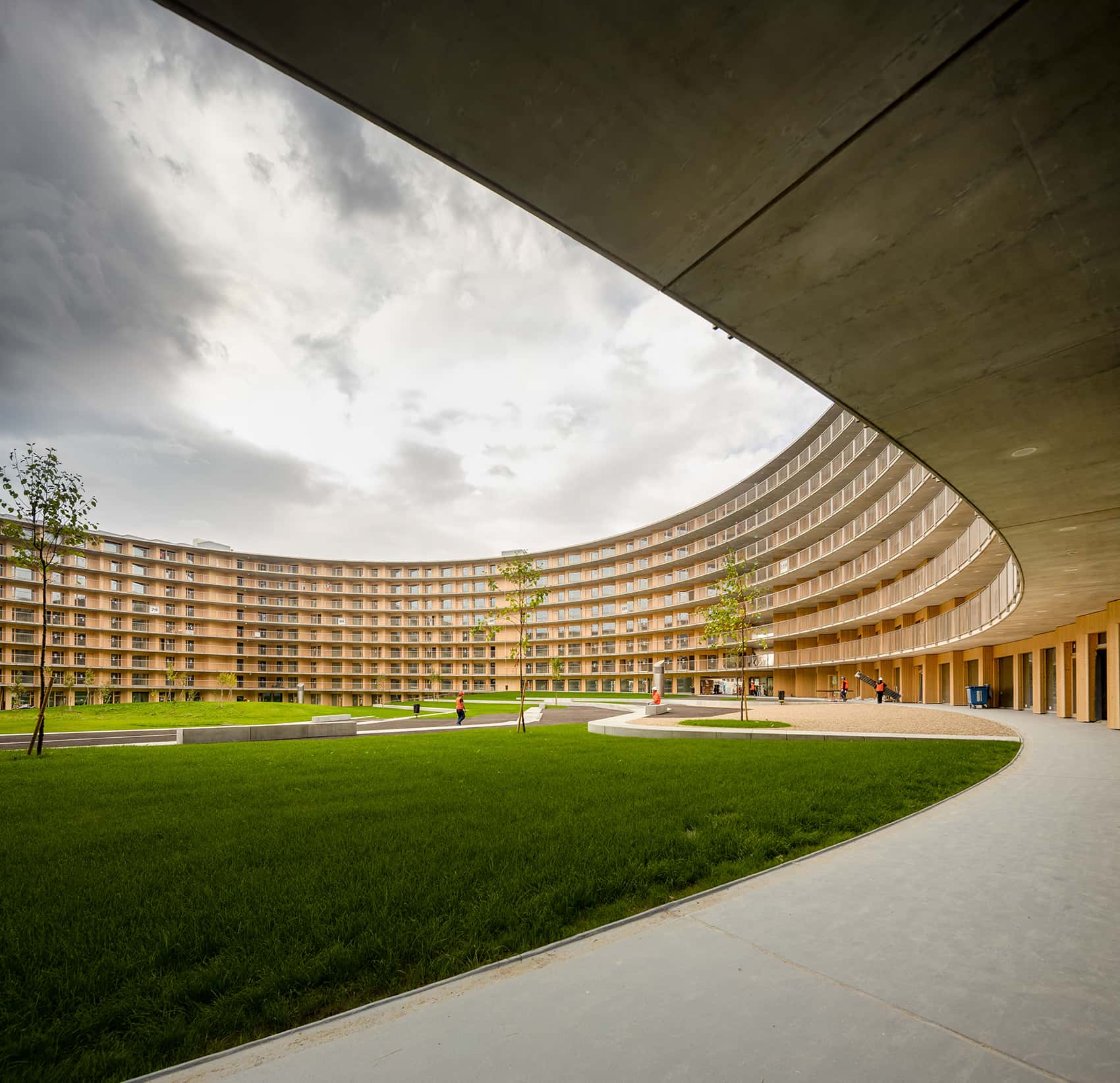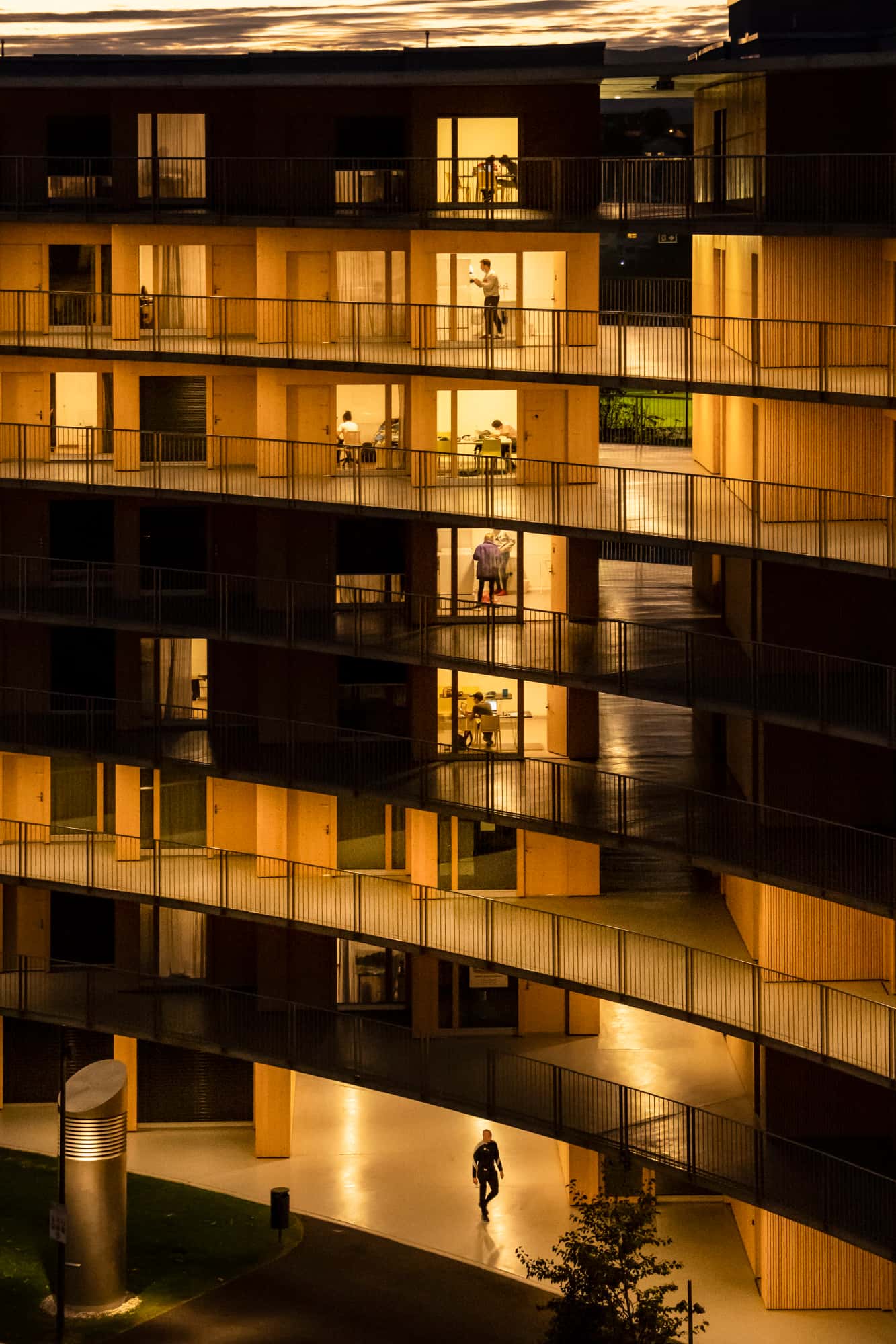 Das Gebäude ermöglicht eine neuartige Art der Kohabitation, welche sich sowohl auf der grosszügigen Rampe als auch im gemeinschaftlichen Innenhof entfaltet. Das Wohnheim dient als Olympisches Dorf für die Jugendolympiade 2020.